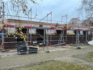 Außerdem wurde mit den Verblenderarbeiten auf der Ostseite begonnen.
