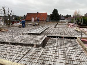 Auch hier wurden die Fertigteildecken-Elemente für die Decke des Erdgeschosses bereits verlegt.