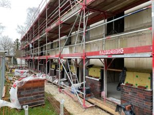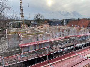 Die Obergeschossdecke wurde vollständig betoniert und die Außenwanderhöhungen für die Dachterrassen sind zu 60 % betoniert. Zudem wurde das Erdgeschoss ausgeschalt und die Verblendarbeiten werden weiterhin fortgesetzt. 😊