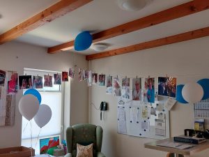 Alles wurde geschmückt, Bilder wurden aufgehängt, es wurde eine Fahrt mit dem Tagespflegebulli organisiert und ein selbstgemachtes Buffet gab es im Anschluss auch noch!